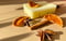 Soy blend wax melt slab, consisting of six beautifully fragranced cubes, topped with dried orange slices. Each individual cube provides 4-6 hours of fragrance.